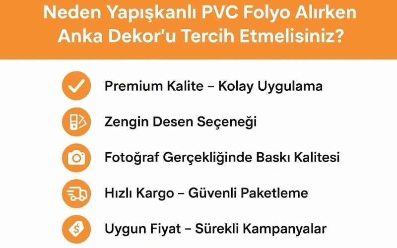 Anka Dekor olarak sadece PVC folyo satmakla kalmıyor aynı zamanda doğru ürünü doğru kullanıcıya doğru fiyat perspektifi ile sunuyoruz.